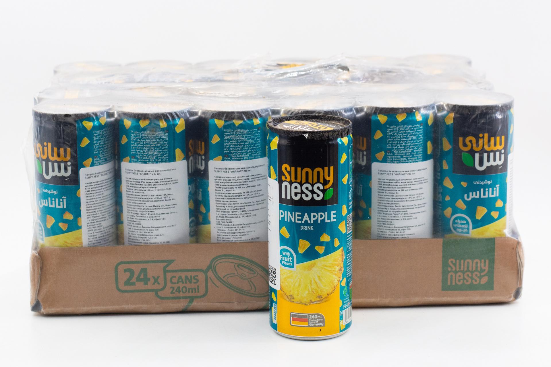 Напиток безалкогольный сокосодержащий Sunny Ness Ананас (Иран) 240мл ж/б68,25 руб. за штуку (в упак. 24 шт.) |