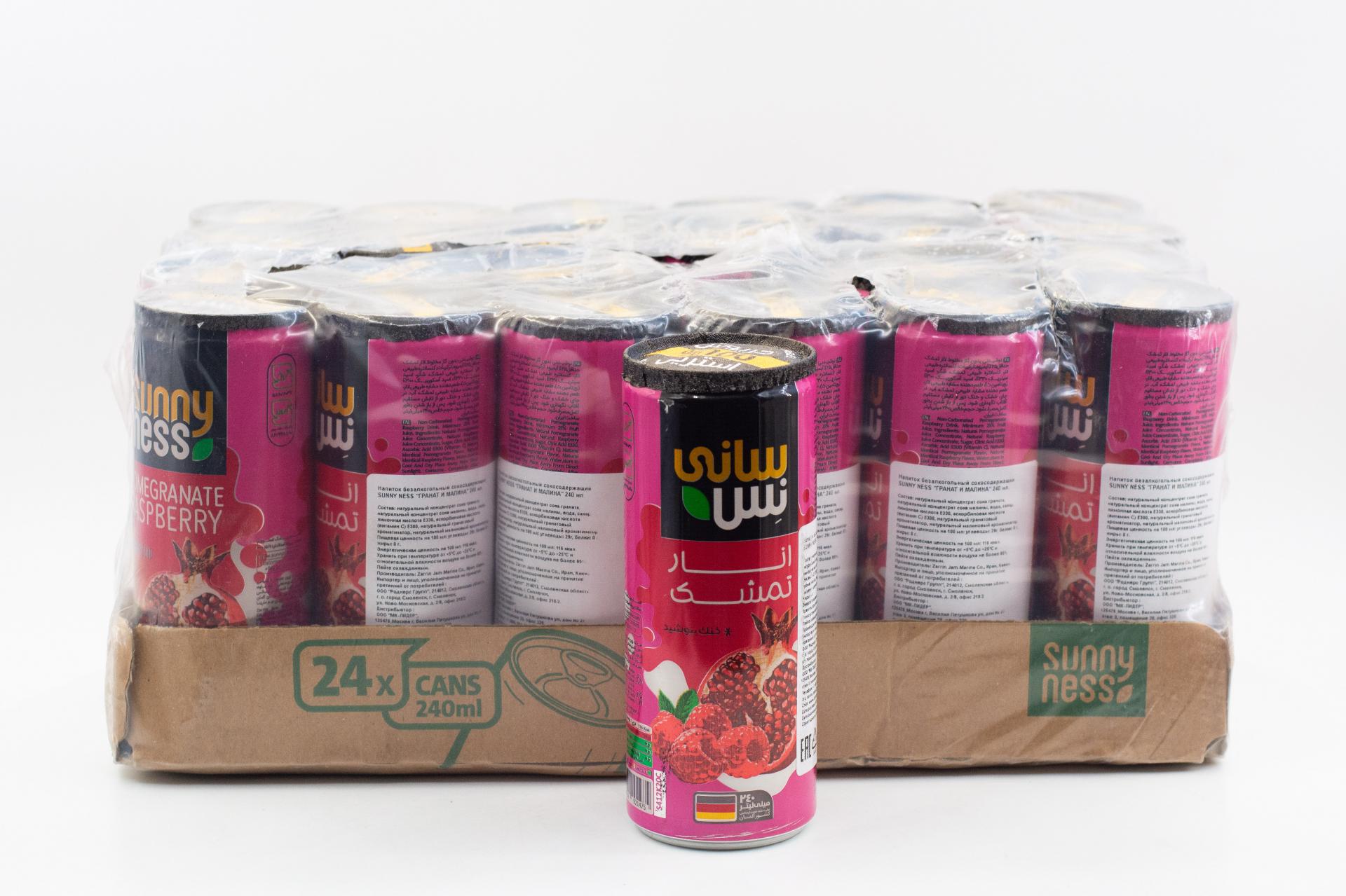 Напиток безалкогольный сокосодержащий Sunny Ness Гранат и малина (Иран) 240мл ж/б68,25 руб. за штуку (в упак. 24 шт.) |